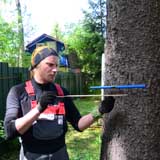 Мы предлагаем продиагностировать ваши деревья, если возникает сомнение, что оно здорово. Но даже с виду здоровое дерево может представлять угрозу. Гниение корней может перейти в древесину непосредственно в центре дерева. В этом случае очень сложно без специального оборудования определить небезопасное дерево. Для диагностики дерева наши специалисты используют возрастные буры, не приченяющие вреда дереву, и, позволяющие определить насколько здорово дерево внутри.
